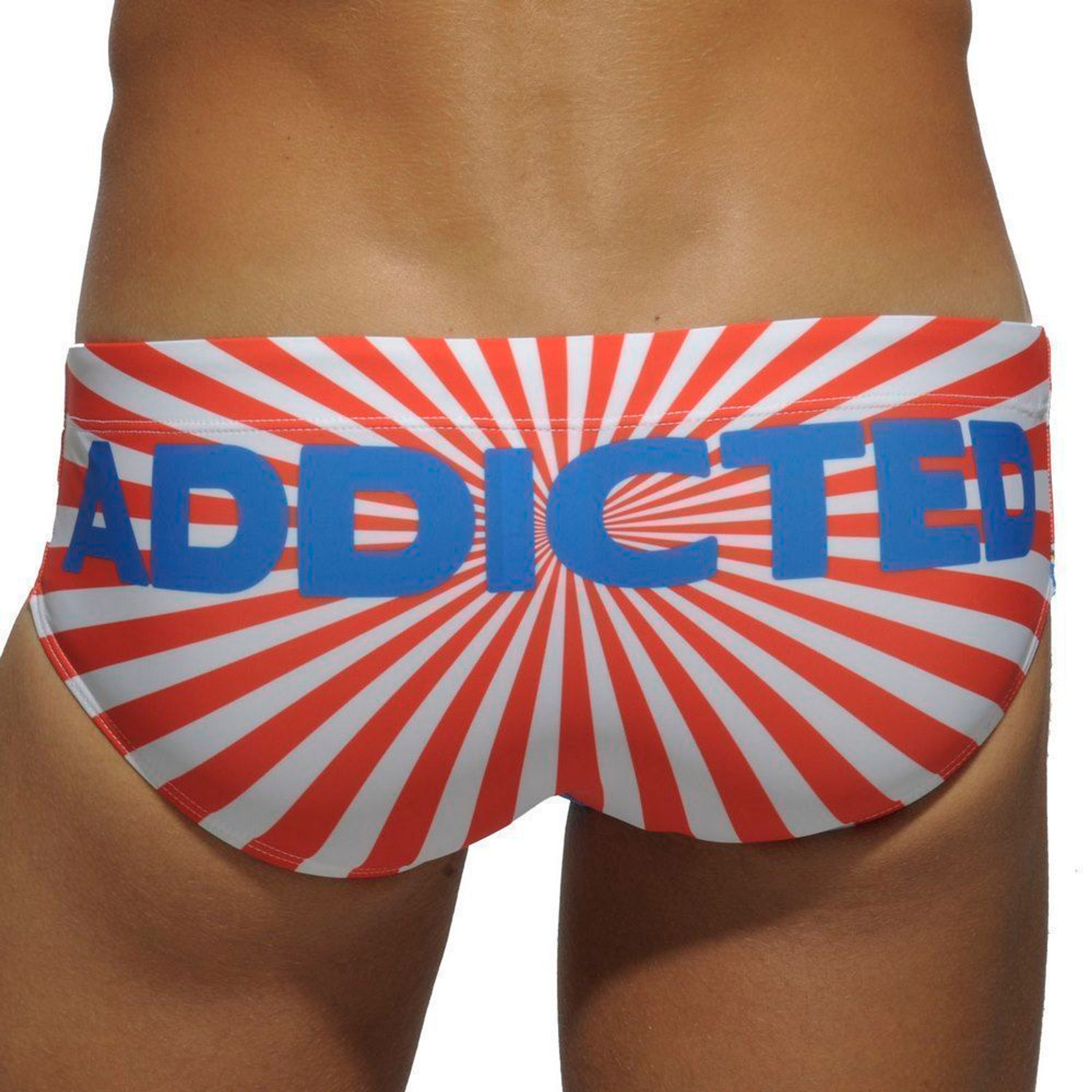 Мужские плавки брифы оранжевобелые с принтом Addicted ПУШ-АП